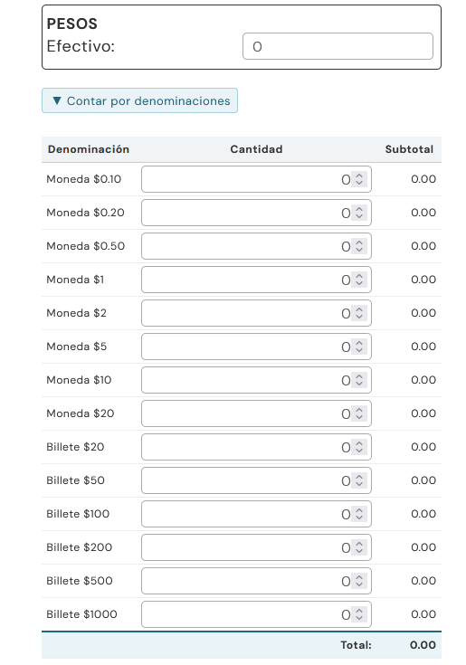 Se agrega funcionalidad para poder contar por denominaciones el efectivo en el corte de caja.